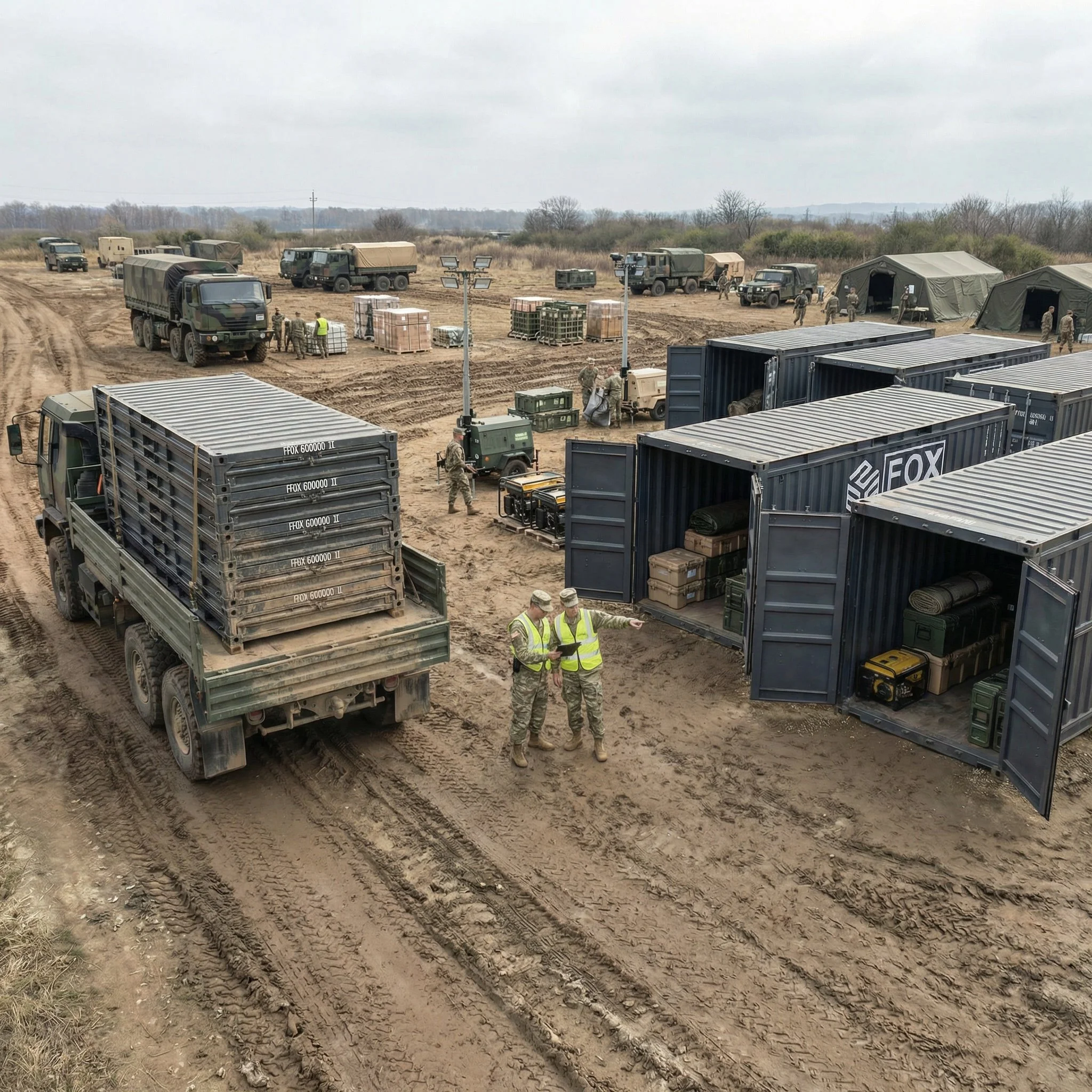 FOX containers can be deployed for temporary storage at forward operating locations, logistics staging areas, training sites and temporary operational bases.